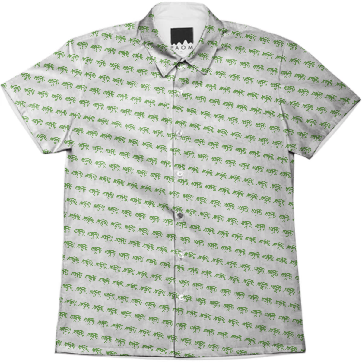 Short sleeve mens button down with spread shirt collar.