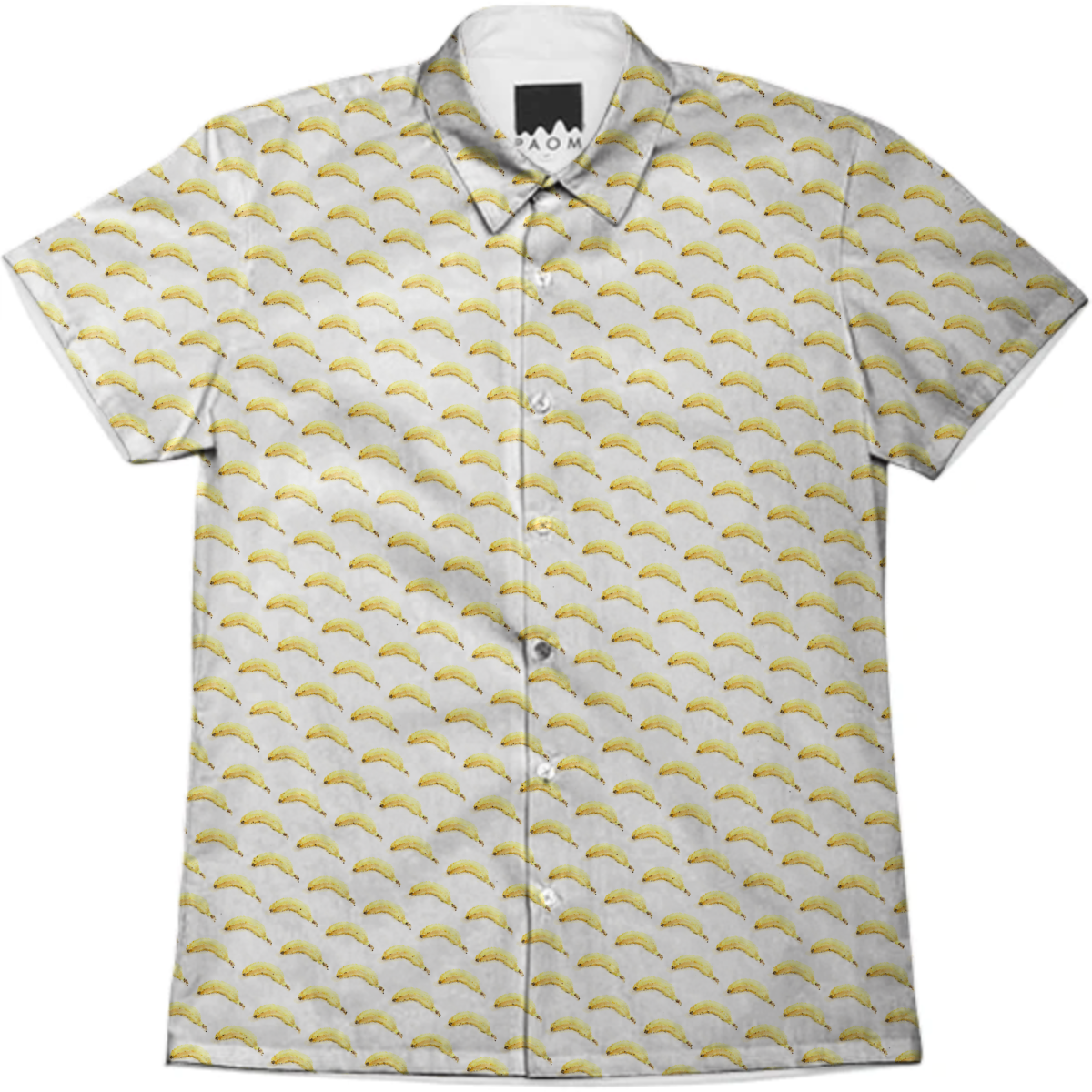 Short sleeve mens button down with spread shirt collar.