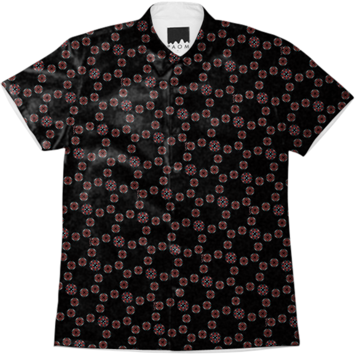 Short sleeve mens button down with spread shirt collar.