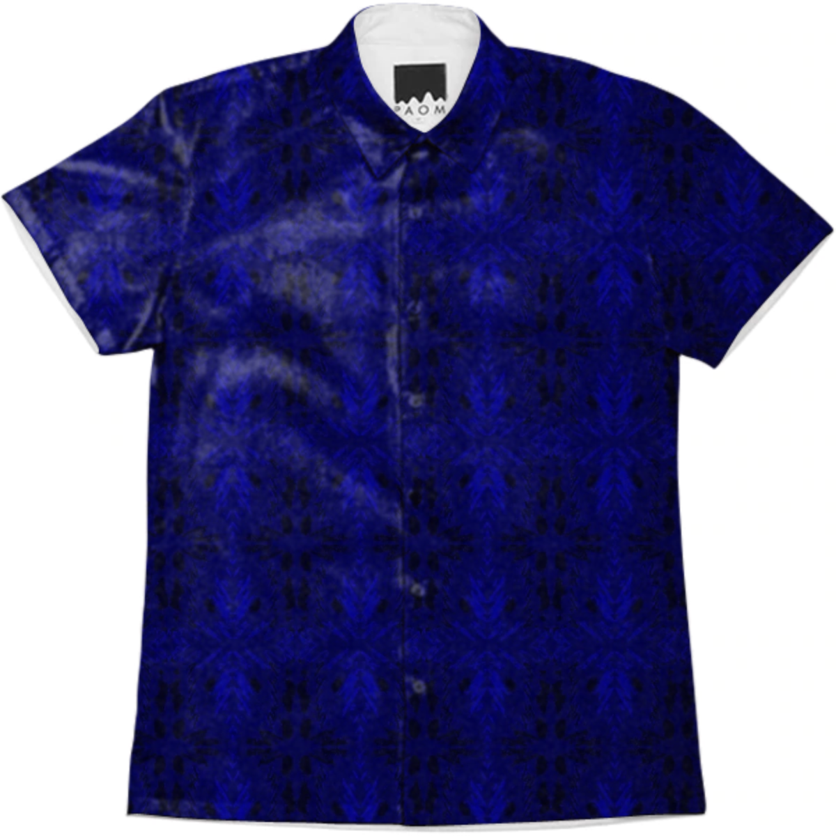 Short sleeve mens button down with spread shirt collar.