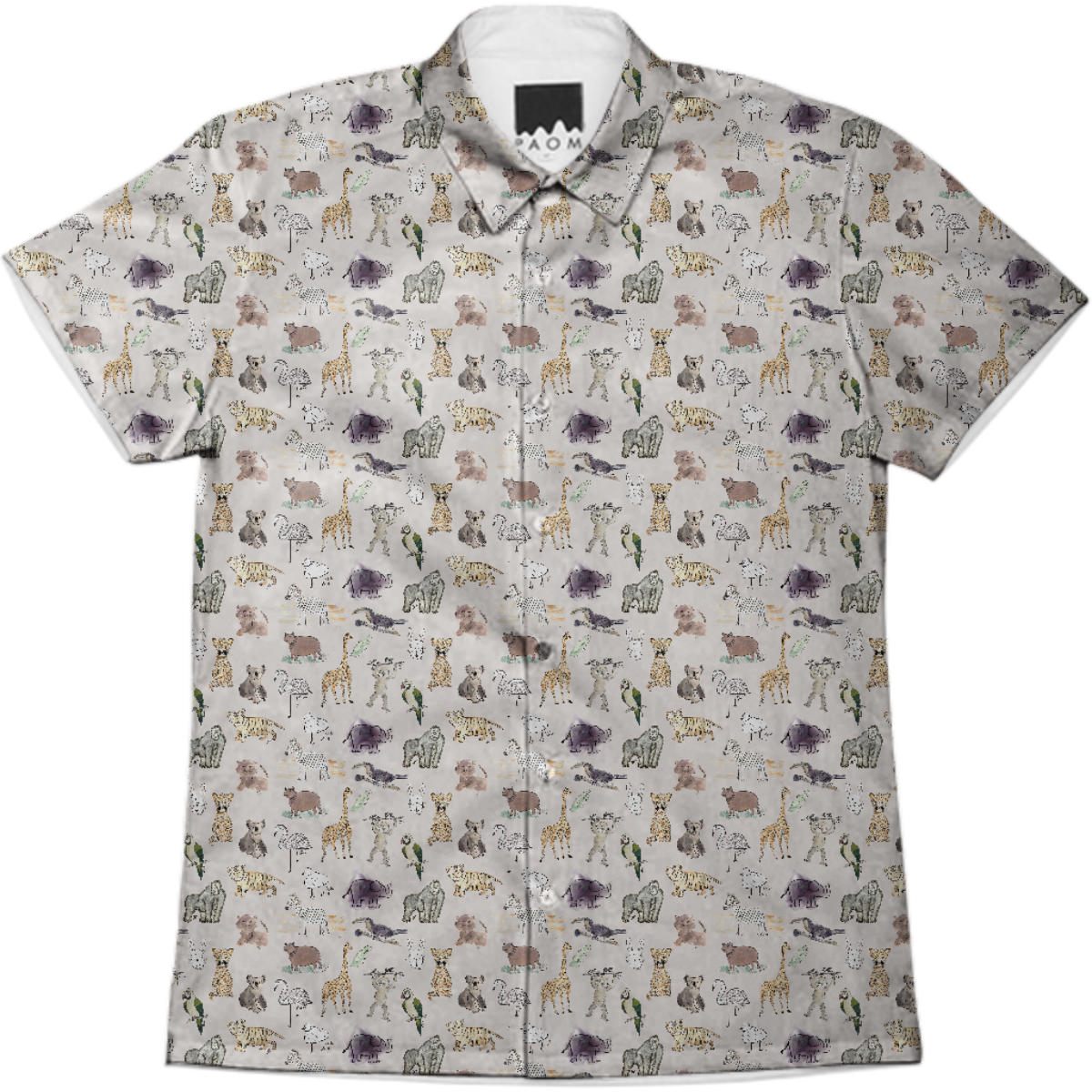Short sleeve mens button down with spread shirt collar.