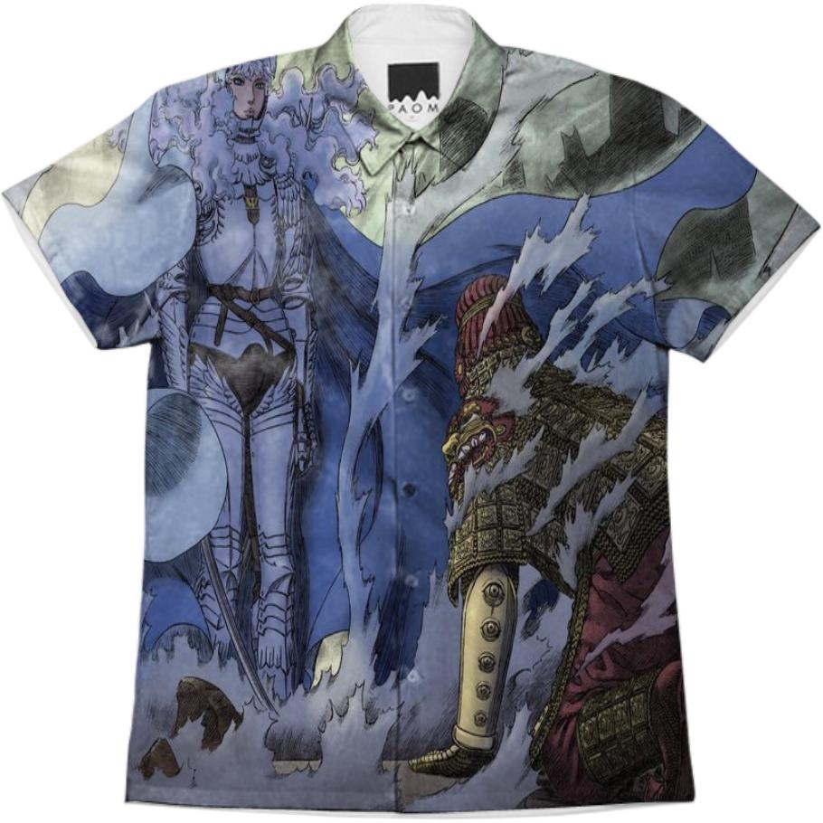 Short sleeve mens button down with spread shirt collar.