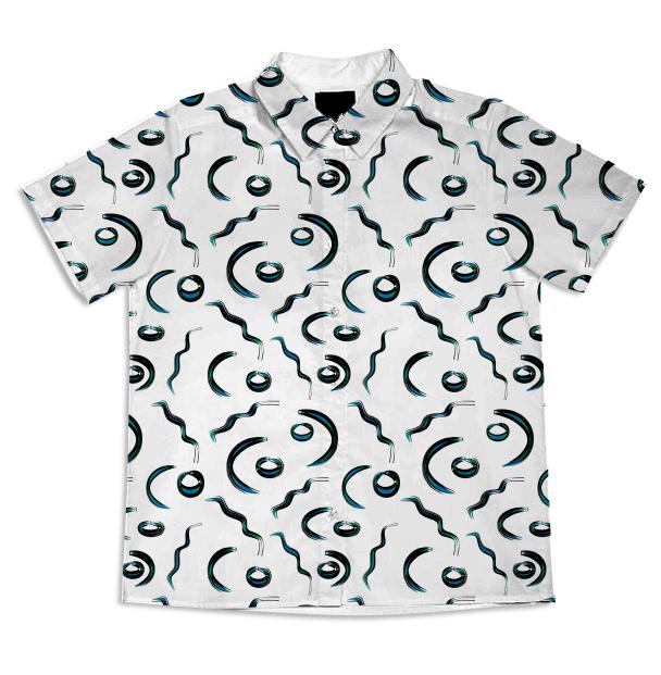 Short sleeve mens button down with spread shirt collar.