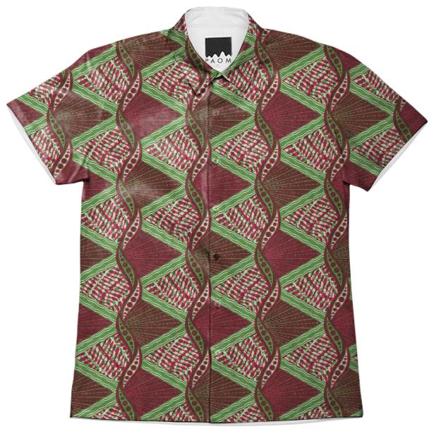 Short sleeve mens button down with spread shirt collar.