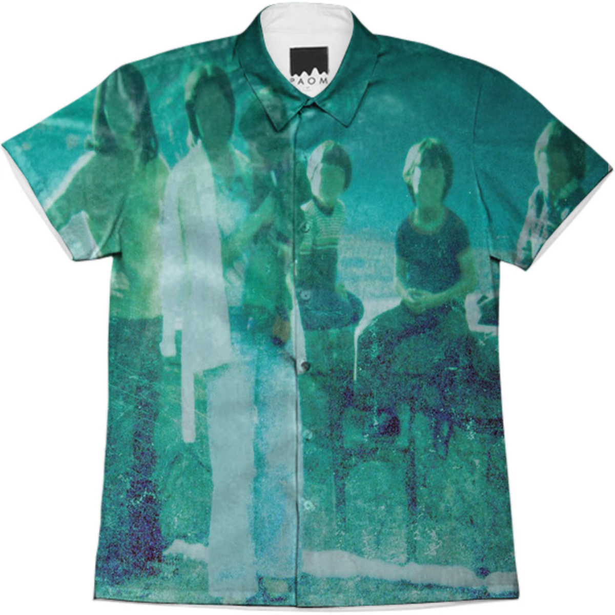 Short sleeve mens button down with spread shirt collar.
