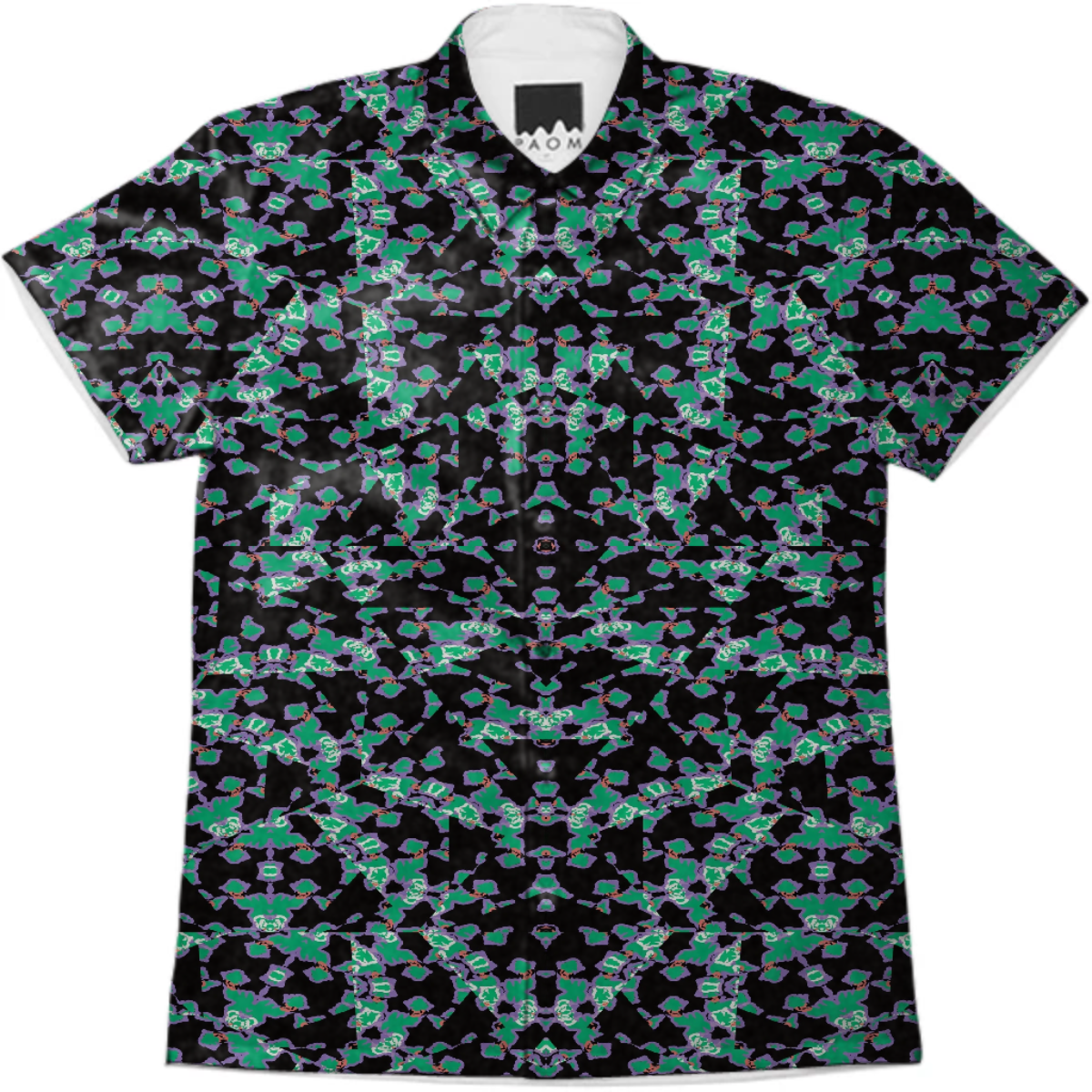 Short sleeve mens button down with spread shirt collar.