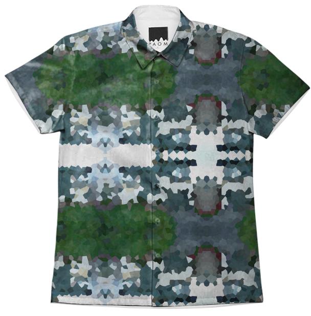 Short sleeve mens button down with spread shirt collar.