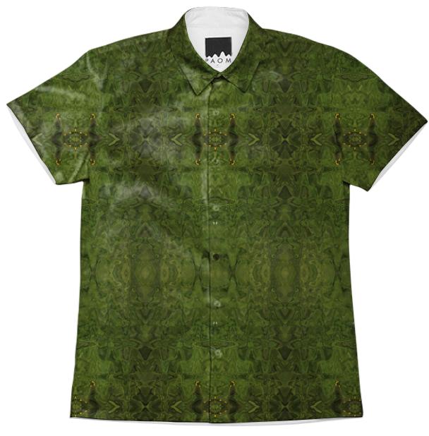 Short sleeve mens button down with spread shirt collar.