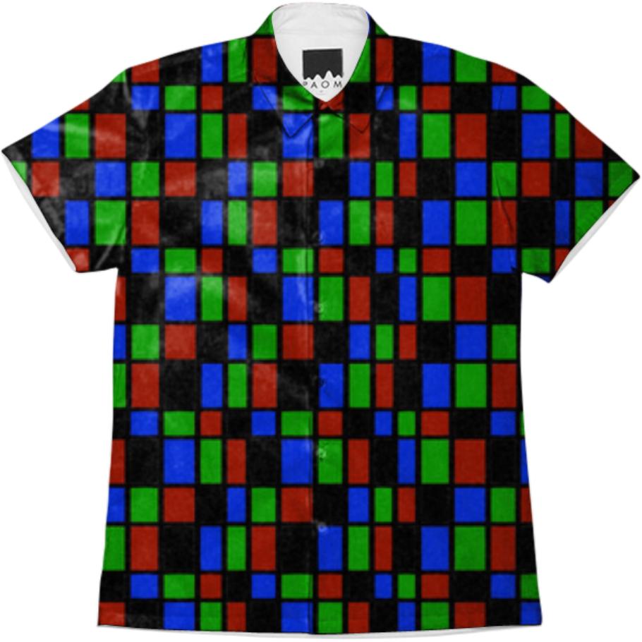 Short sleeve mens button down with spread shirt collar.