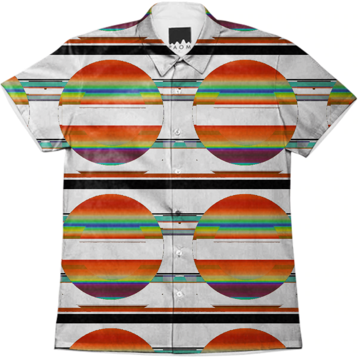 Short sleeve mens button down with spread shirt collar.