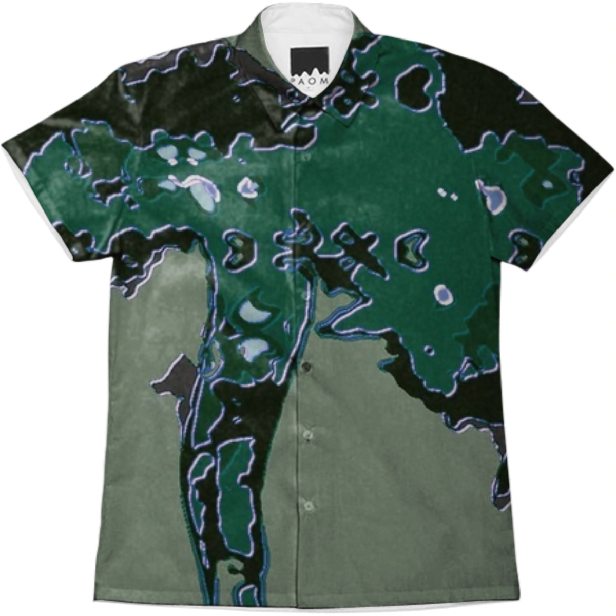 Short sleeve mens button down with spread shirt collar.