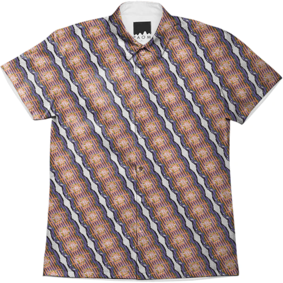 Short sleeve mens button down with spread shirt collar.