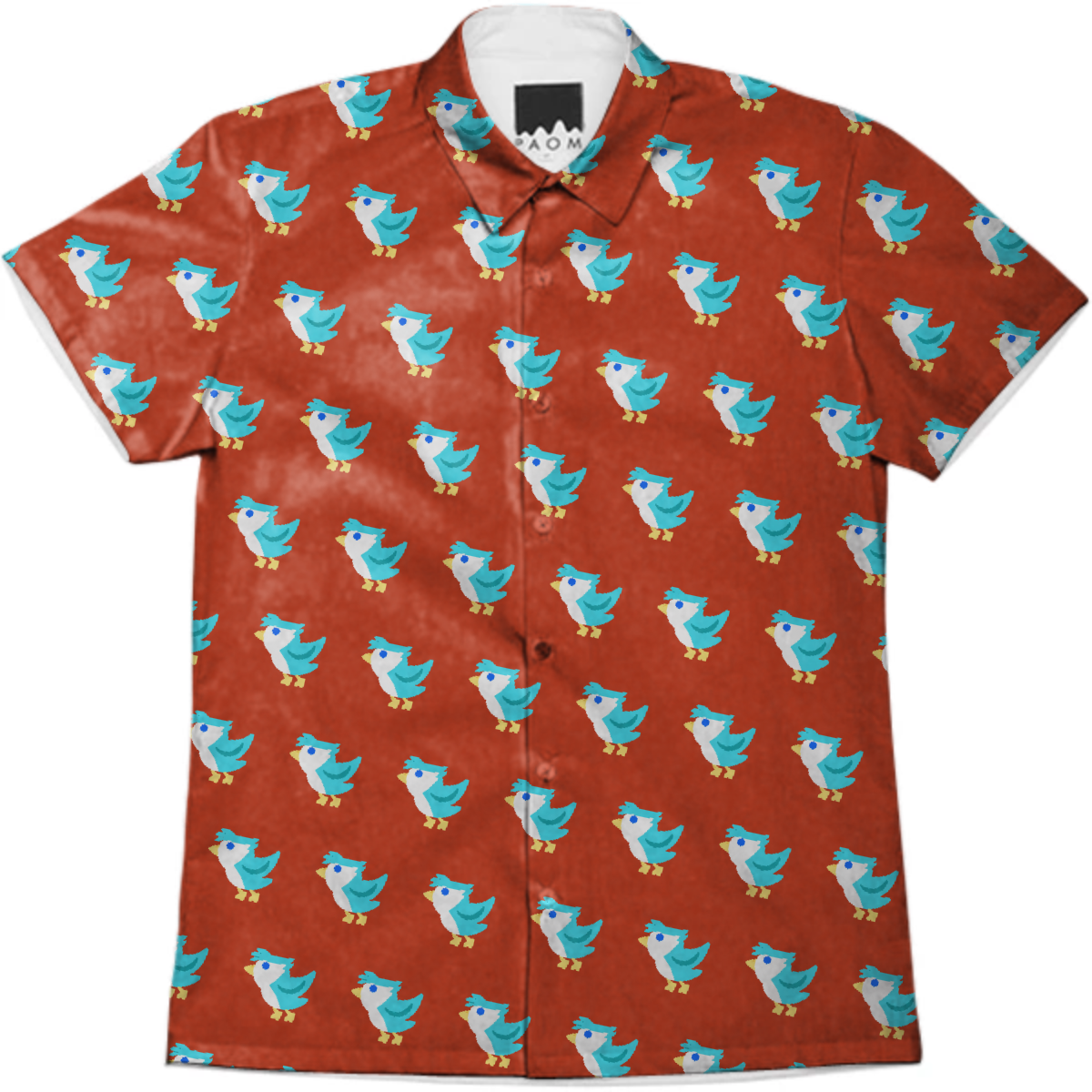 Short sleeve mens button down with spread shirt collar.
