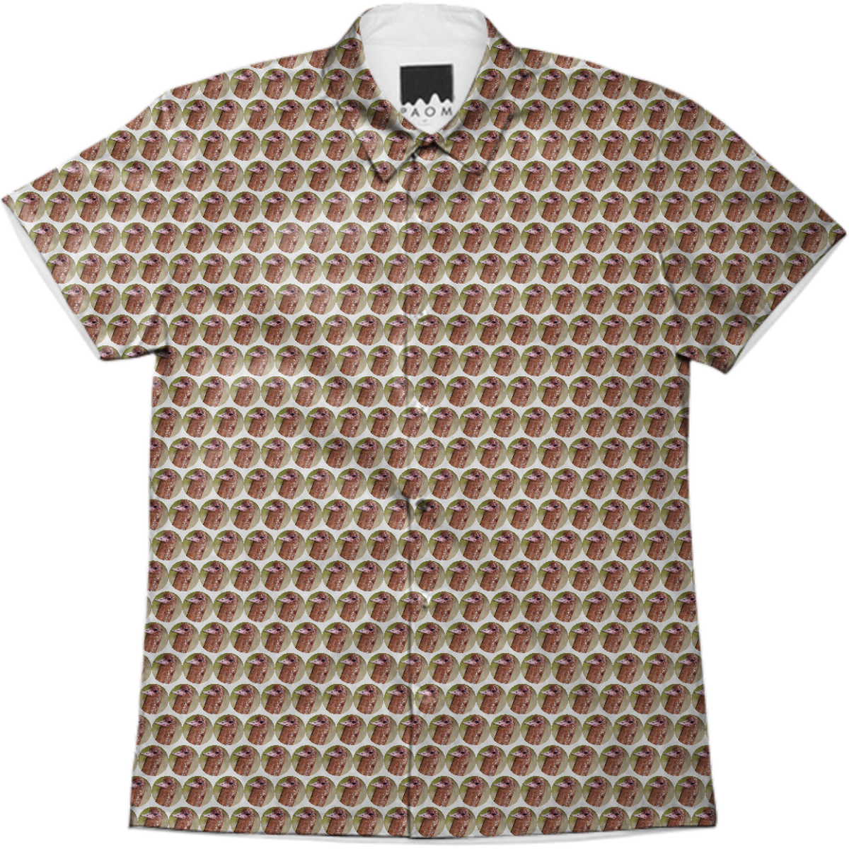 Short sleeve mens button down with spread shirt collar.