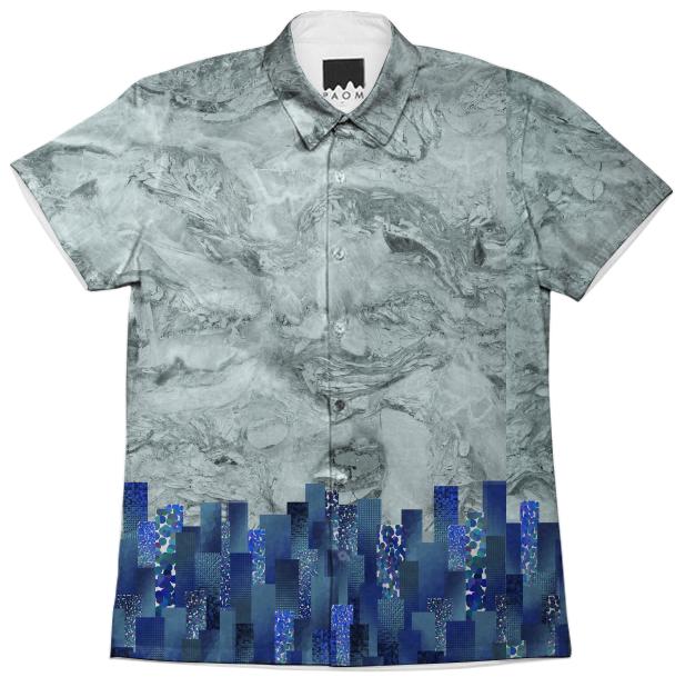 Short sleeve mens button down with spread shirt collar.