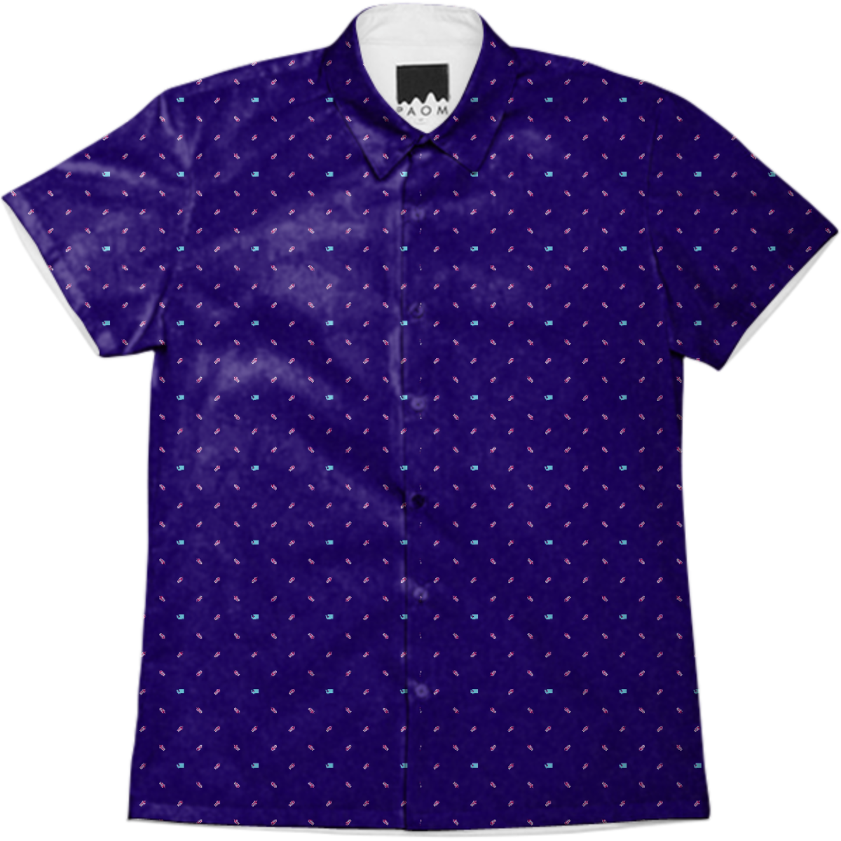 Short sleeve mens button down with spread shirt collar.