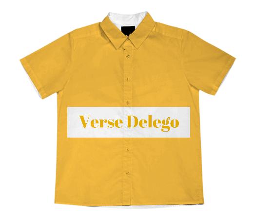 Short sleeve mens button down with spread shirt collar.