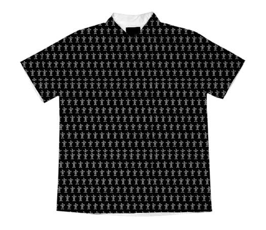 Short sleeve mens button down with spread shirt collar.