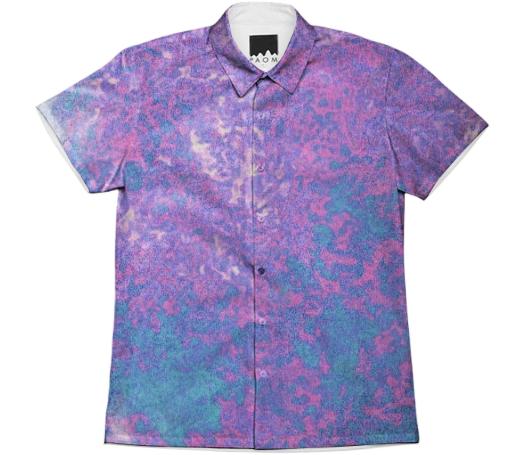 Short sleeve mens button down with spread shirt collar.