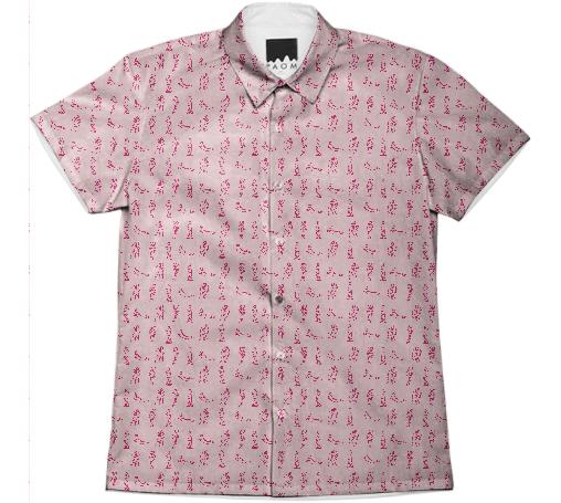 Short sleeve mens button down with spread shirt collar.