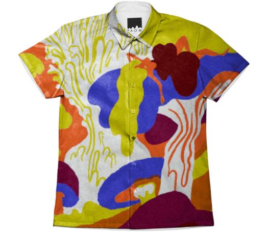 Short sleeve mens button down with spread shirt collar.