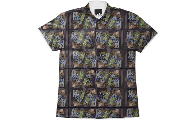 Short sleeve mens button down with spread shirt collar.