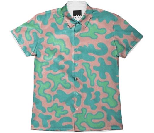 Short sleeve mens button down with spread shirt collar.