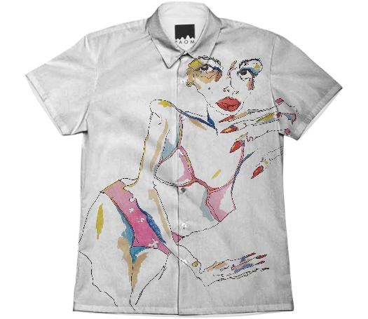 Short sleeve mens button down with spread shirt collar.