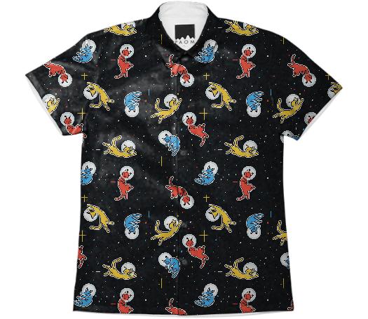 Short sleeve mens button down with spread shirt collar.