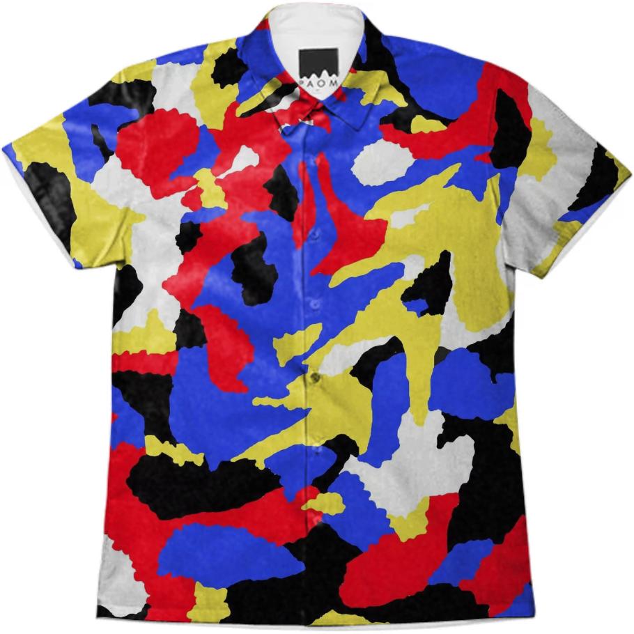 Short sleeve mens button down with spread shirt collar.