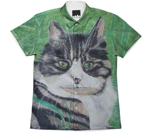 Short sleeve mens button down with spread shirt collar.
