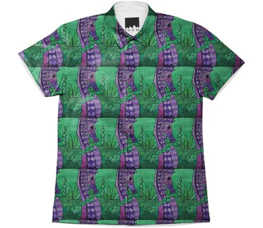 Short sleeve mens button down with spread shirt collar.