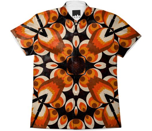 Short sleeve mens button down with spread shirt collar.