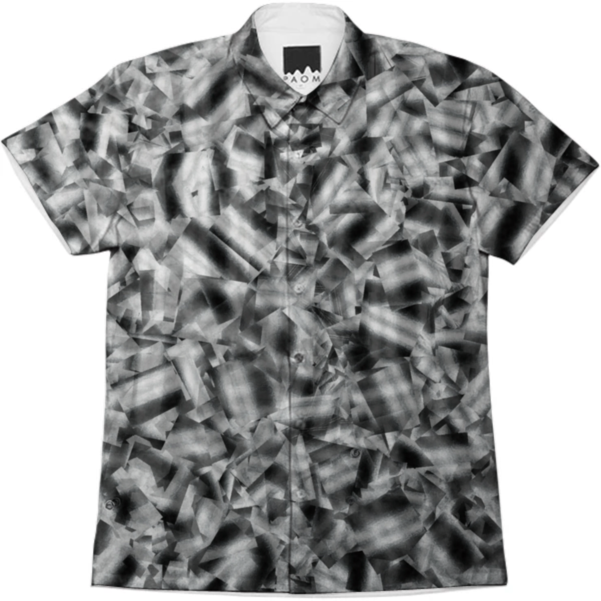 Short sleeve mens button down with spread shirt collar.