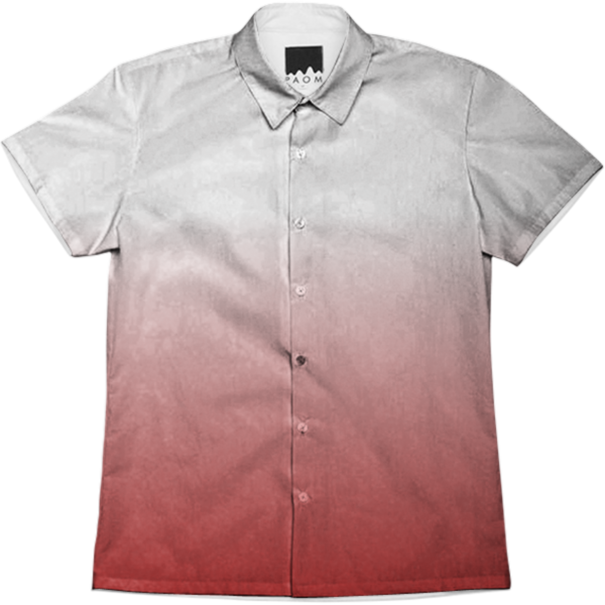Short sleeve mens button down with spread shirt collar.
