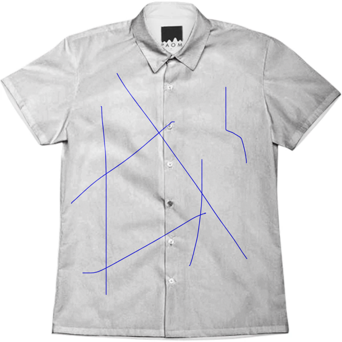 Short sleeve mens button down with spread shirt collar.