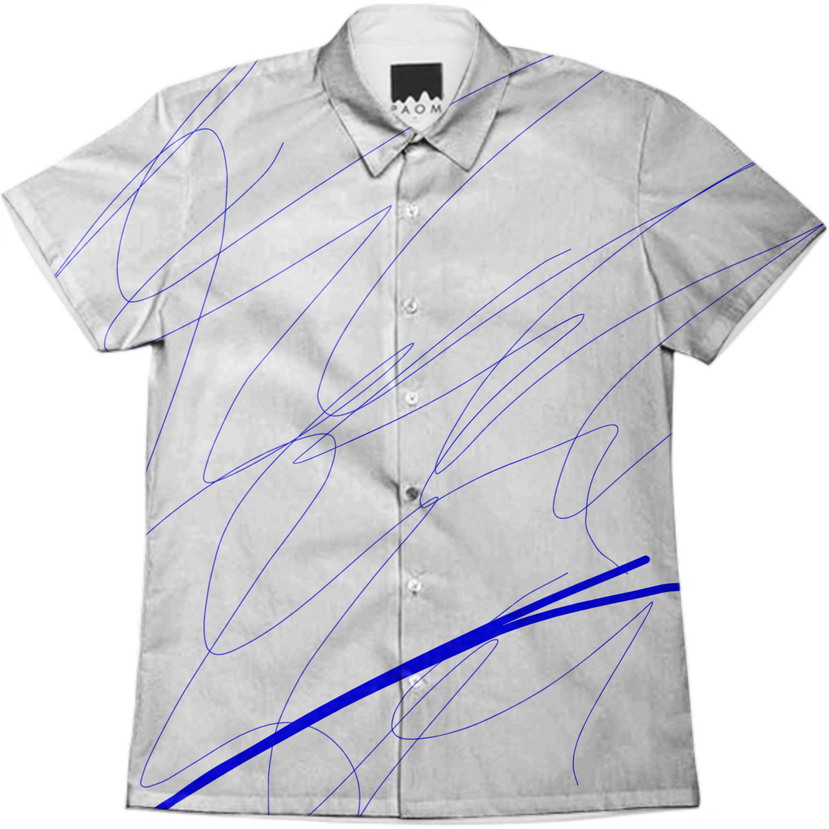 Short sleeve mens button down with spread shirt collar.