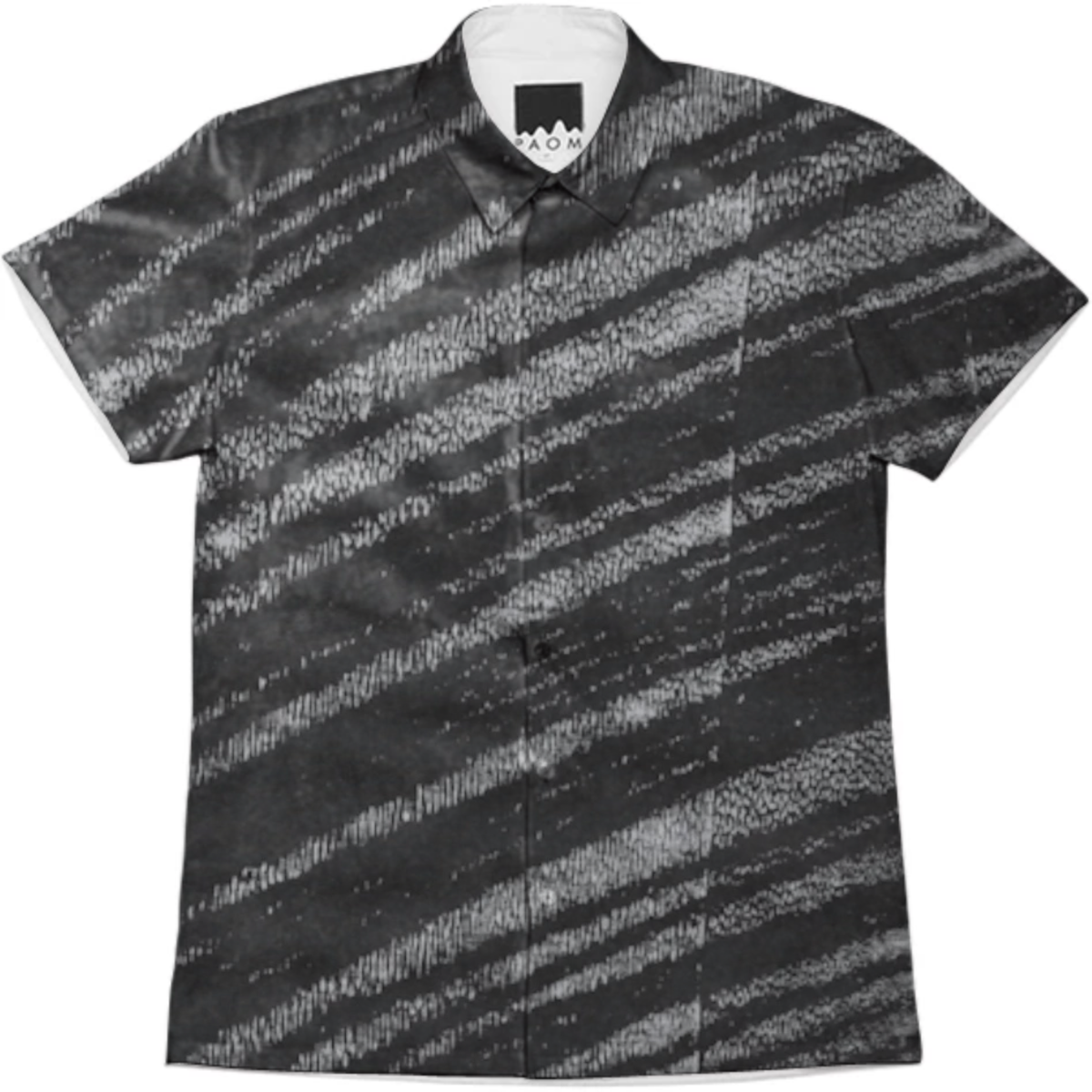 Short sleeve mens button down with spread shirt collar.
