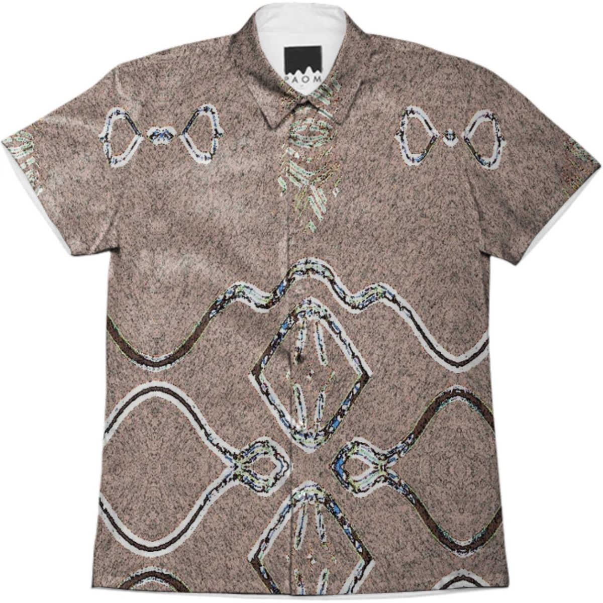 Short sleeve mens button down with spread shirt collar.