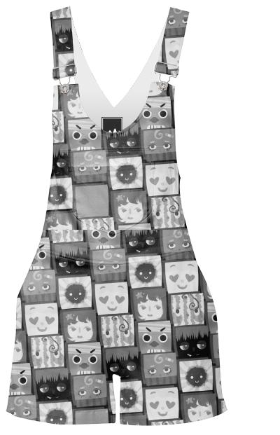 Short relaxed fit overalls with pockets two at the hips two on the back and one on the front bib. Straps are adjustable.