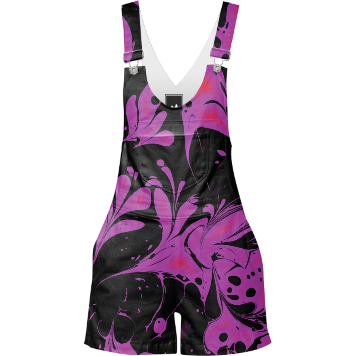 Short relaxed fit overalls with pockets two at the hips two on the back and one on the front bib. Straps are adjustable.
