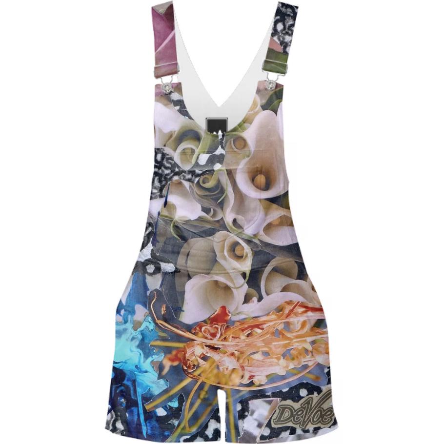 Short relaxed fit overalls with pockets two at the hips two on the back and one on the front bib. Straps are adjustable.