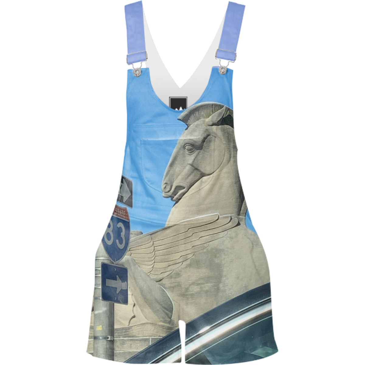 Short relaxed fit overalls with pockets two at the hips two on the back and one on the front bib. Straps are adjustable.