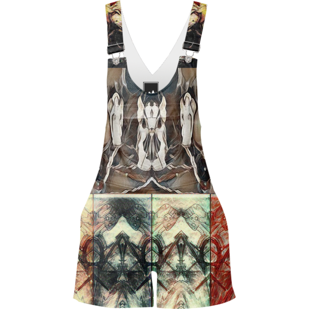 Short relaxed fit overalls with pockets two at the hips two on the back and one on the front bib. Straps are adjustable.