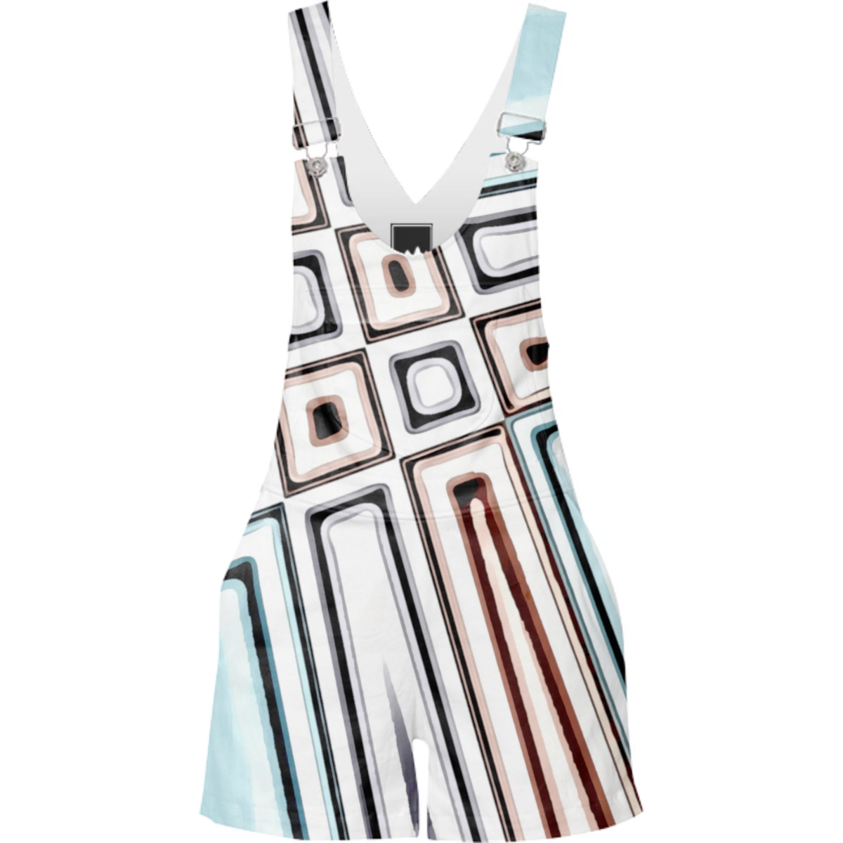 Short relaxed fit overalls with pockets two at the hips two on the back and one on the front bib. Straps are adjustable.