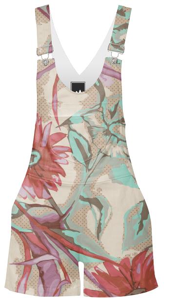 Short relaxed fit overalls with pockets two at the hips two on the back and one on the front bib. Straps are adjustable.