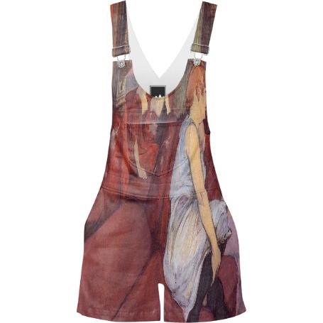 Short relaxed fit overalls with pockets two at the hips two on the back and one on the front bib. Straps are adjustable.