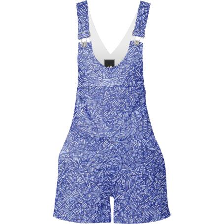 Short relaxed fit overalls with pockets two at the hips two on the back and one on the front bib. Straps are adjustable.