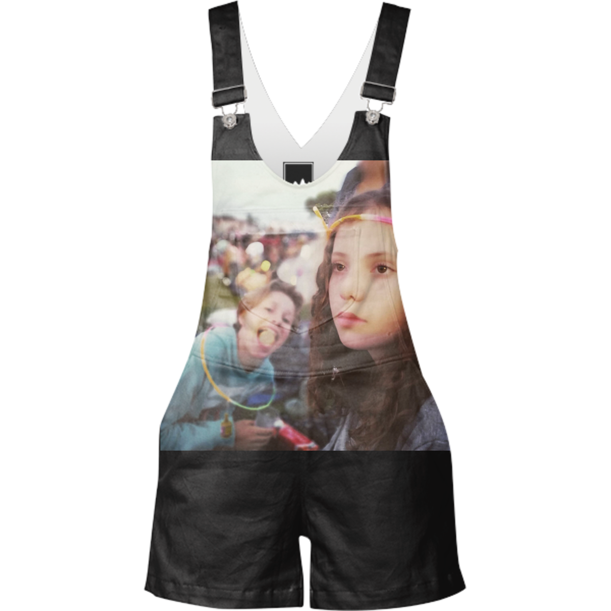 Short relaxed fit overalls with pockets two at the hips two on the back and one on the front bib. Straps are adjustable.