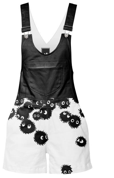 Short relaxed fit overalls with pockets two at the hips two on the back and one on the front bib. Straps are adjustable.